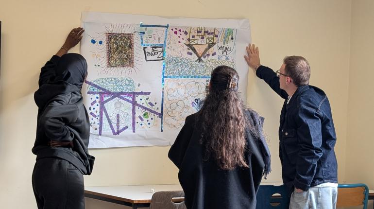 Elle s’est prolongée par un atelier de médiation artistique, invitant les étudiants à expérimenter la création comme espace d’échange, d’écoute et de rencontre.